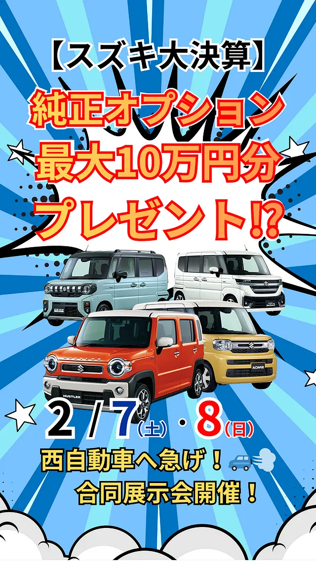 スズキの車をお得に買うなら、間違いなく今週末がチャンスです。