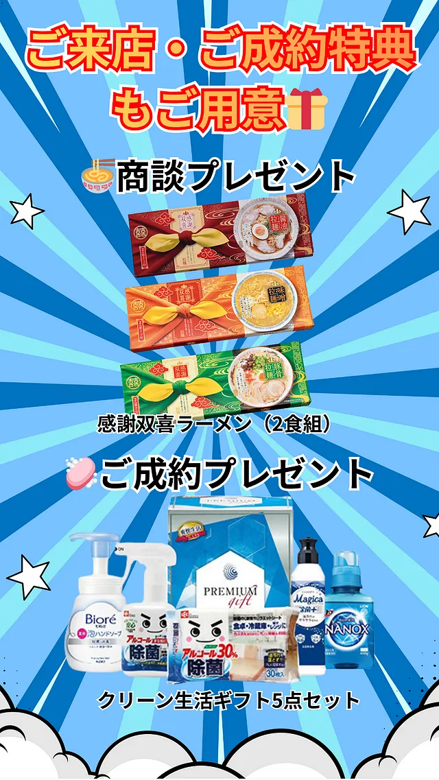 今回はイベント限定の「ご来場特典」と、期間中にご決断いただいた方への「ご成約特典」を多数ご用意しました。