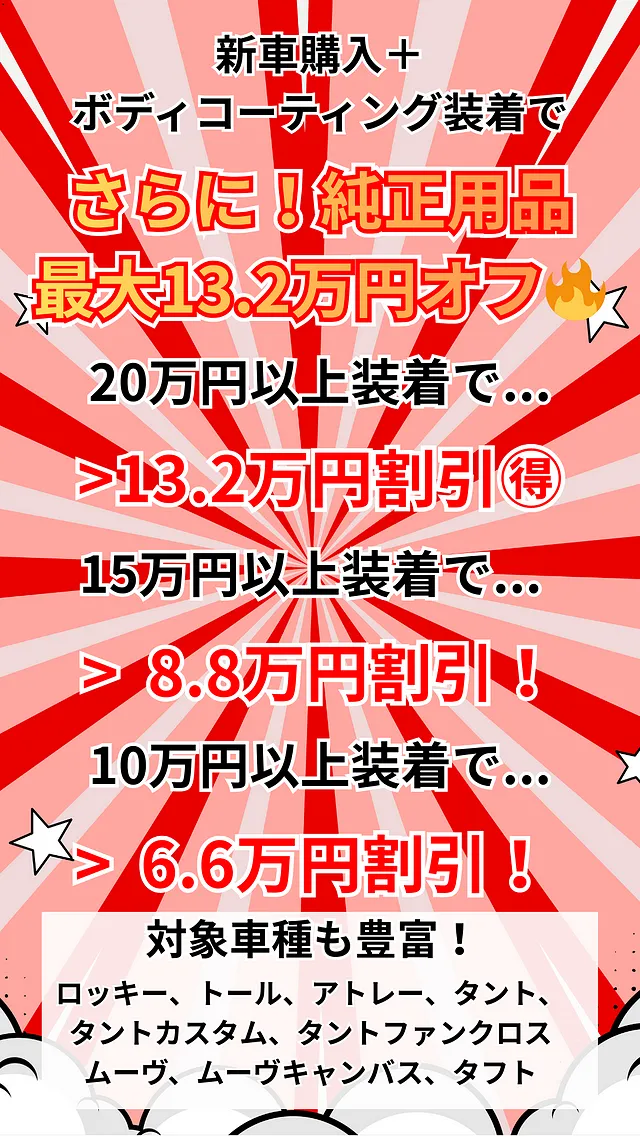 今回のダイハツは…新車購入+コーティングで純正用品がガッツリ安くなる