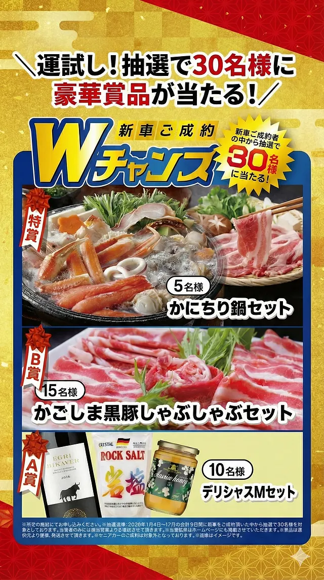 新車ご成約で、純正オプションを最大10万円分プレゼント!