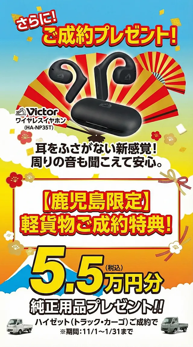 ハイゼット(トラック・カーゴ)ご成約で純正用品5.5万円分(税込)プレゼント!