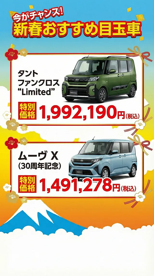 新しい年の始まりに、新しいお車はいかがでしょうか?