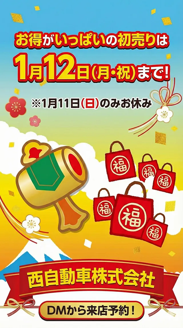 お得がいっぱいの初売りは1月12日(月・祝)まで!