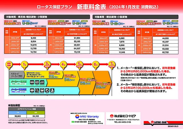 ロータス延長保証「えんちょう☆先生」は、新車3年後に終了してしまうメーカー「一般保証」を、さらに2年間延長します。新車ご購入時と初回車検時(15万㎞以下)に、ご加入できます。