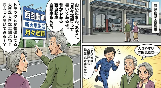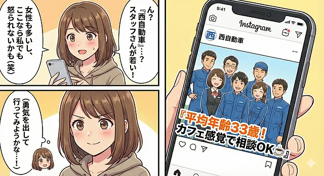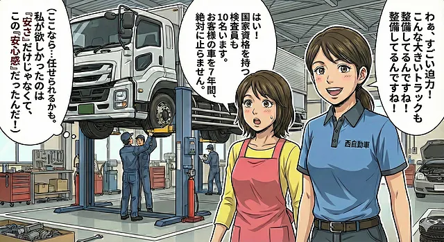 車庫証明の申請、登録手続き及び納車は西自動車が行います。お車をご確認いただき、ご利用開始となります。
