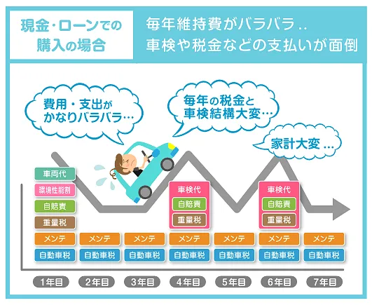 新★車生活7年リースは車検や各種点検整備、税金、自賠責保険などの維持費がすべてコミコミです♬