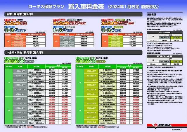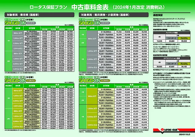 A.『ロータス中古車保証』SHUGO☆CIN「スタンダード」とより保証部品が多い「プレミアム」プランがございます。