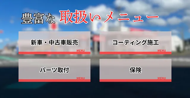 「新車をいつまでもキレイに乗りたい」「中古車をキレイにしたい」そんなご要望に、当社こだわりのコーティング技術力でお応えいたします。